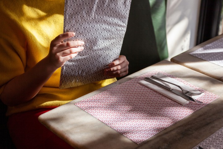 Redesenho de marca e criação de sistema de identidade visual para Restaurante Nou. Cardápio, porta contas, embalagens, uniformes e jogo americano.